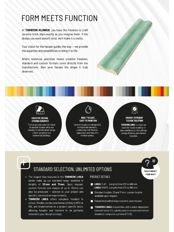 All information about TONWERK LINEA as well as the options for individual façade design is available for download in multiple languages on our website.